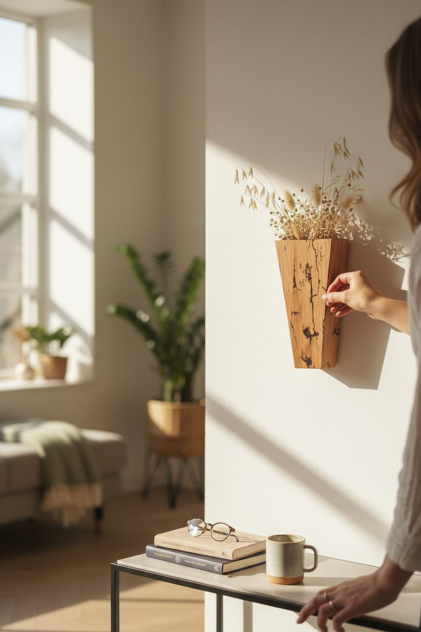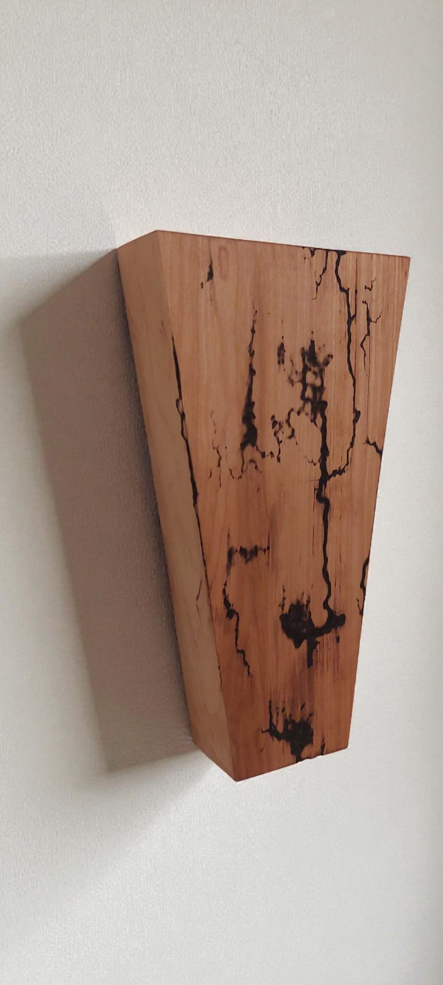 Taimira seinäruukku fraktaali-poltolla. Materiaali: Pellavaöljyllä käsitelty Leppä.