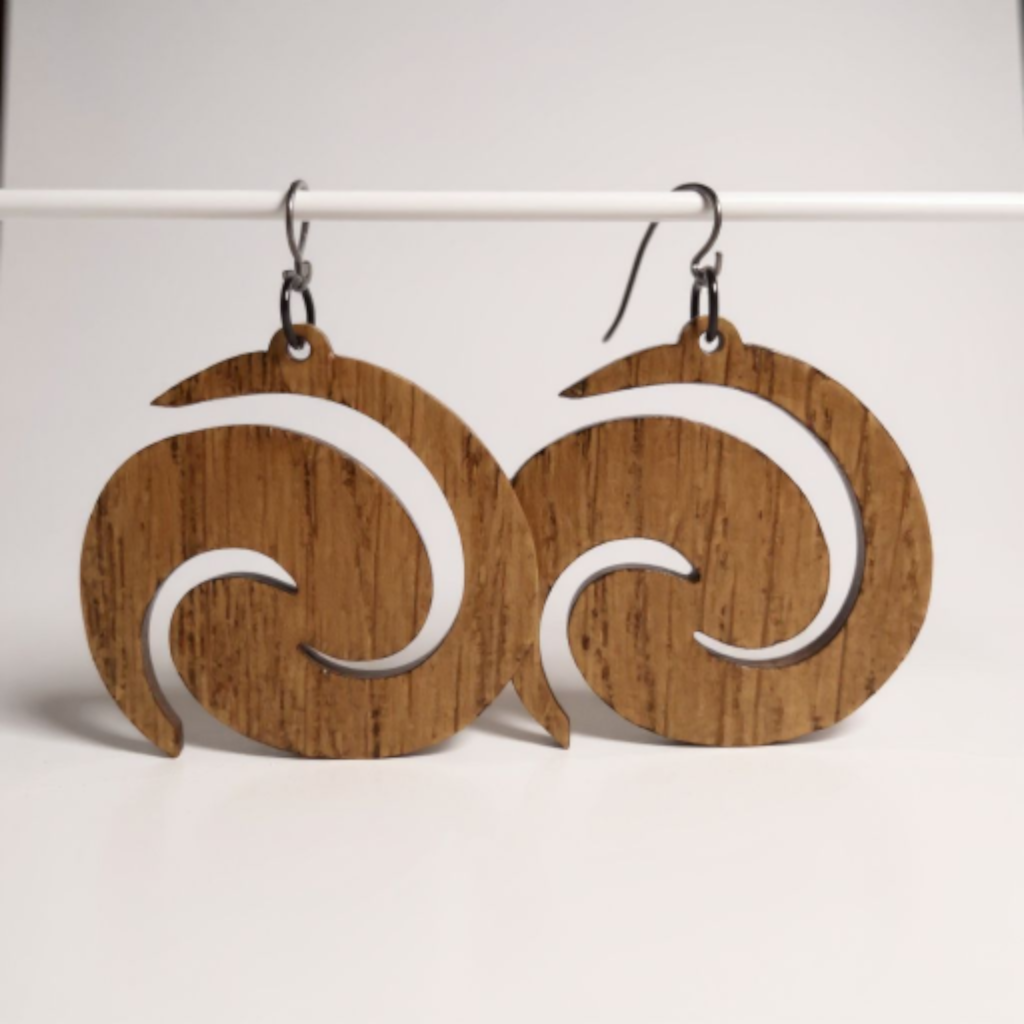 Kauniit tammesta käsinvalmistetut korvakorut. Malli: Linnunrata