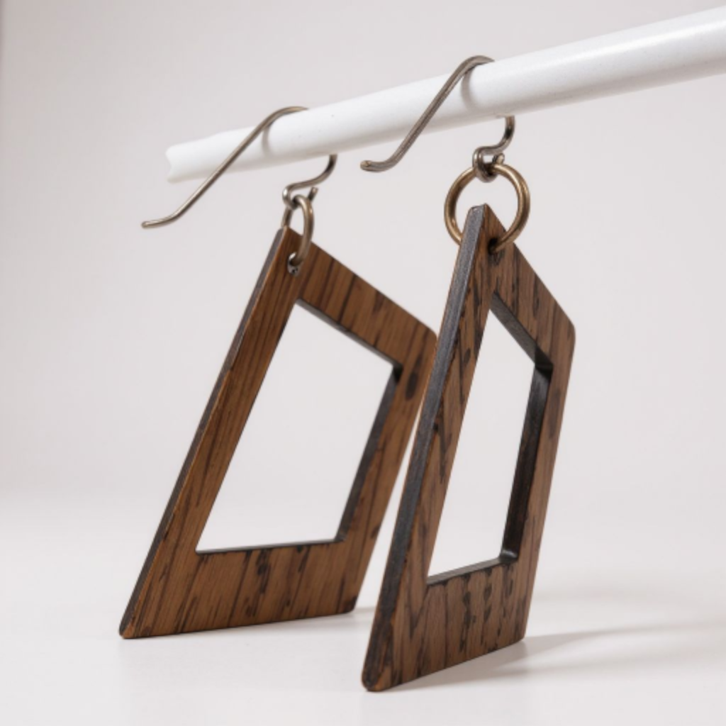 Kauniit tammesta käsinvalmistetut korvakorut. Malli: Otava