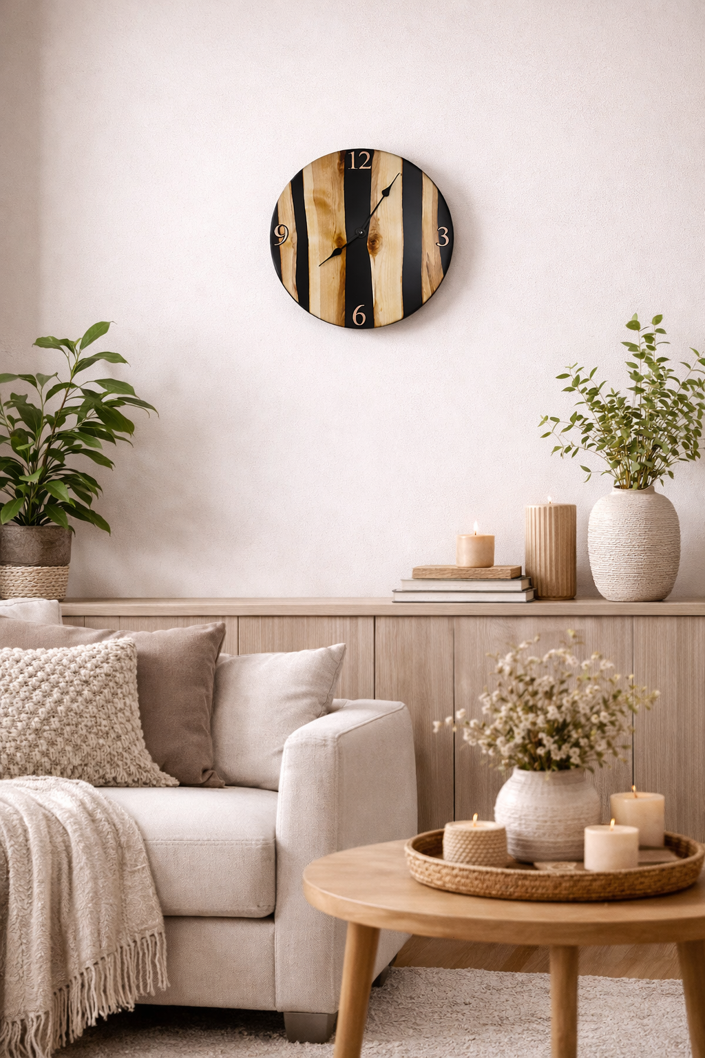 Pinta on käsitelty Vinnie's Oililla, joka tekee satiinisen matta pinnan. Kello sopii hyvin niin kodin kuin mökin sisustukseen.