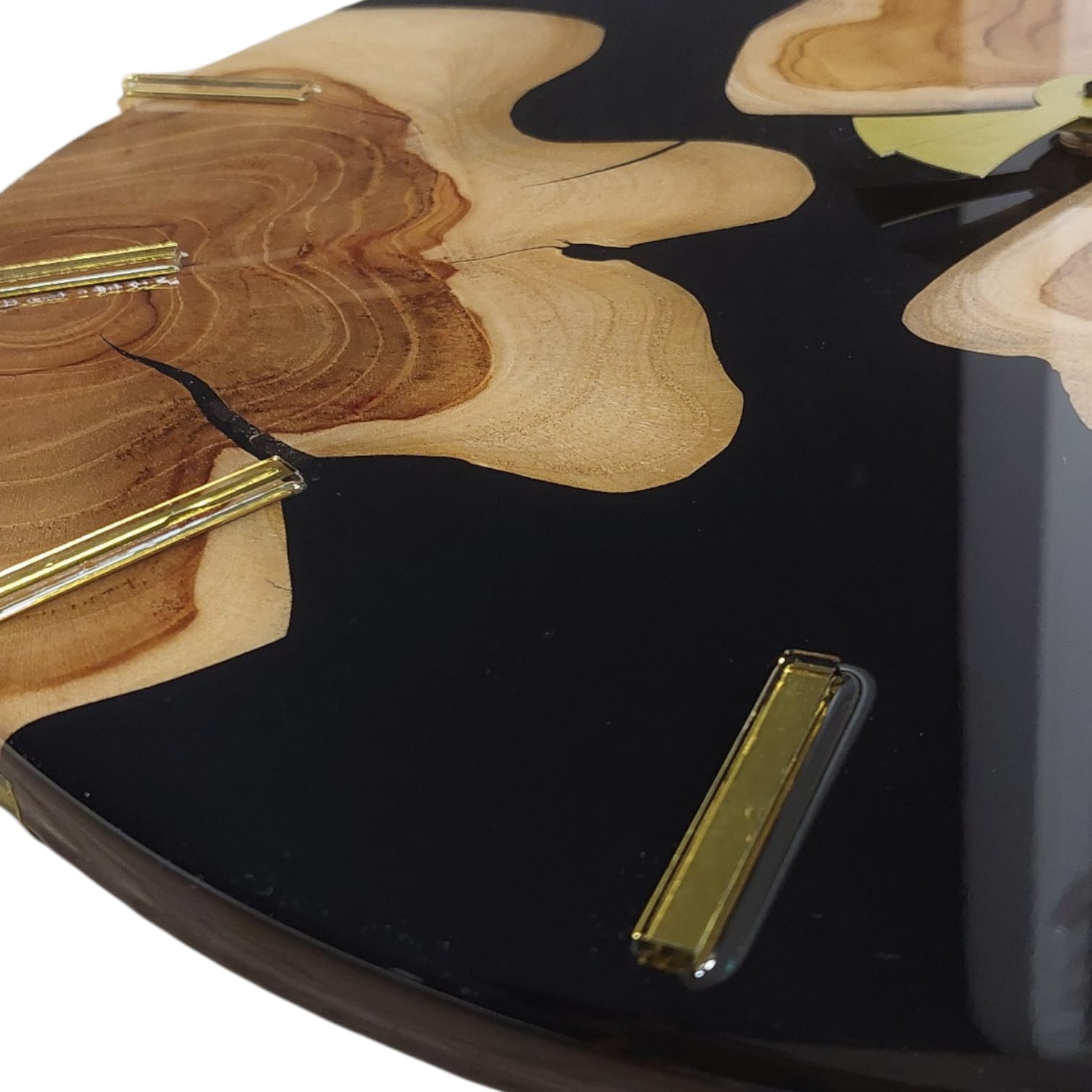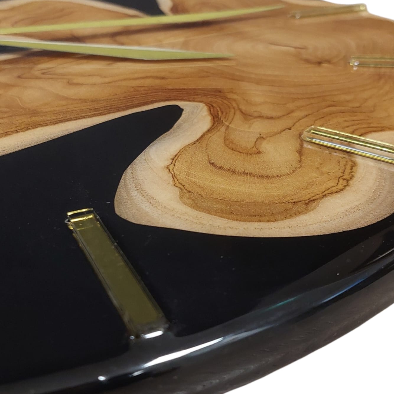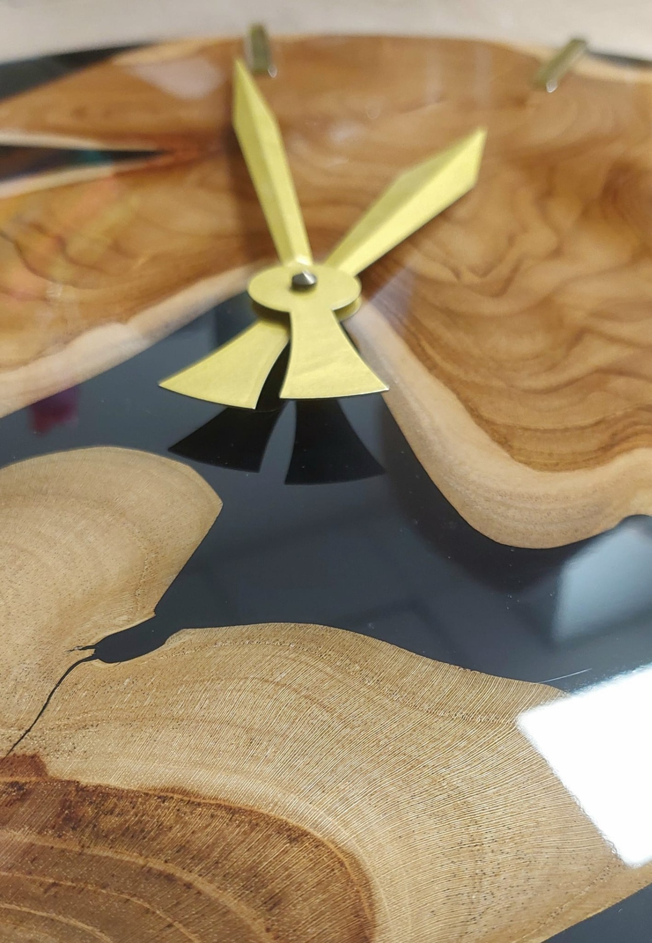 Todellinen huomion herättäjä kodin tai mökin seinälle. Tämä upea kello on valmistettu Tiikki-puusta ja epoksihartsista. Kellossa on laadukas voimakoneisto, joka jaksaa pyörittää isompiakin viisareita.